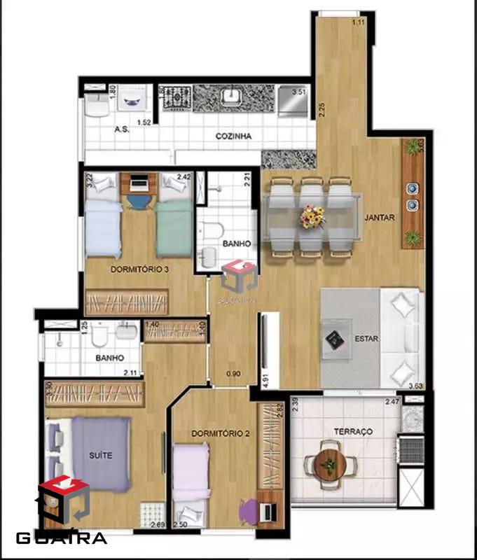 Apartamento localizado no condomínio Club View, com uma área total de 83,05 m². Desfrute de um lazer completo, que inclui piscinas adulto e infantil. Situado ao lado do Club Atlético Aramaçã e do Estádio Bruno Daniel, a apenas 10 minutos do Atriun Shopping e do Centro de Santo André. O imóvel está próximo a diversos comércios e serviços da Vila Pires e Vila Humaitá. O apartamento possui uma ótima distribuição dos ambientes, com 3 dormitórios, sendo uma suíte. A sala conta com dois ambientes integrados com a cozinha, além de uma varanda com churrasqueira e uma vista livre para aproveitar momentos de lazer e relaxamento. Não perca tempo, agende sua visita agora mesmo e venha conhecer esse incrível imóvel! Guaíra Imóveis – Desde 1987, conectando pessoas aos seus sonhos com solidez, transparência e um atendimento digitalmente humanizado. Com agências no ABC e em São Paulo e uma equipe com mais de 250 corretores prontos para te ajudar a comprar, vender ou alugar seu imóvel com segurança e agilidade. Todos os preços e condições comerciais estão sujeitos a alterações – Creci 21.699-J.