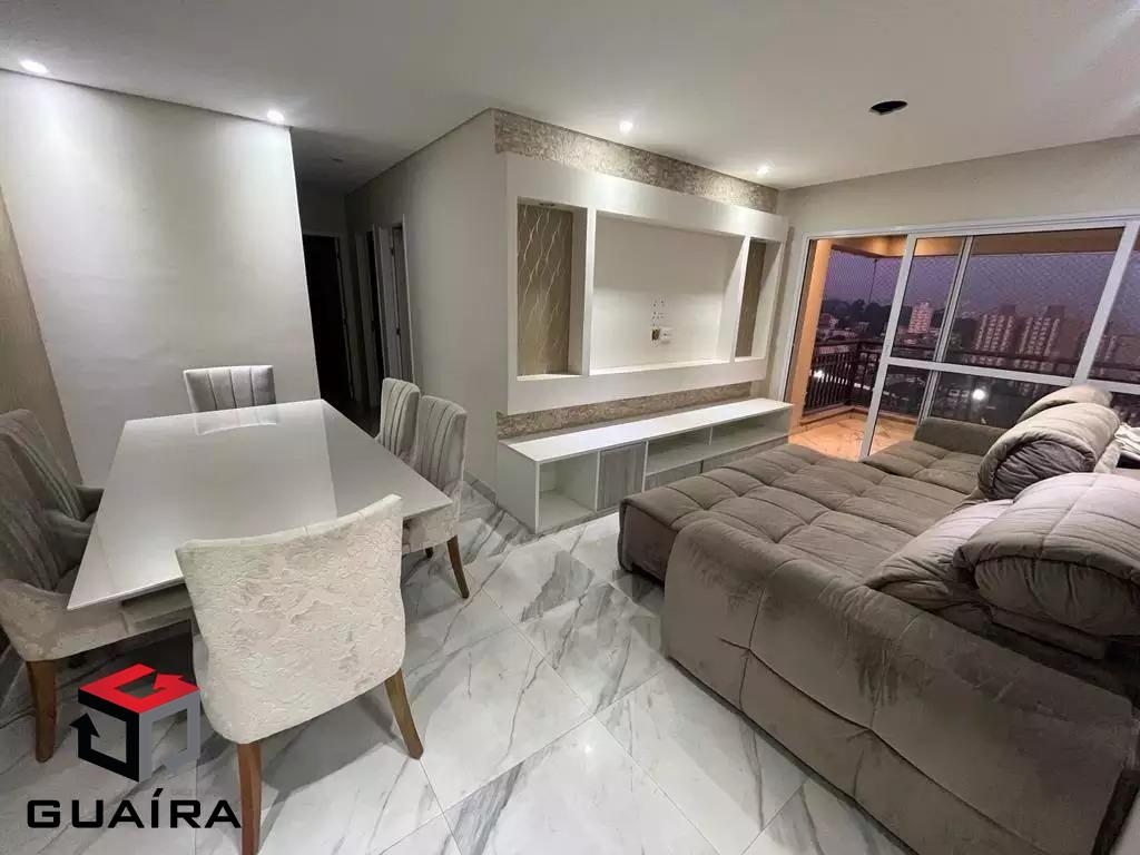 O apartamento tem 3 quartos, sendo 1 suíte (2 com armários planejados), sala ampla com 2 ambientes, 1 banheiro social, 1 cozinha com armários planejados, varanda gourmet envidraçada com churrasqueira a carvão, área de serviço separada, 2 vagas de garagem.