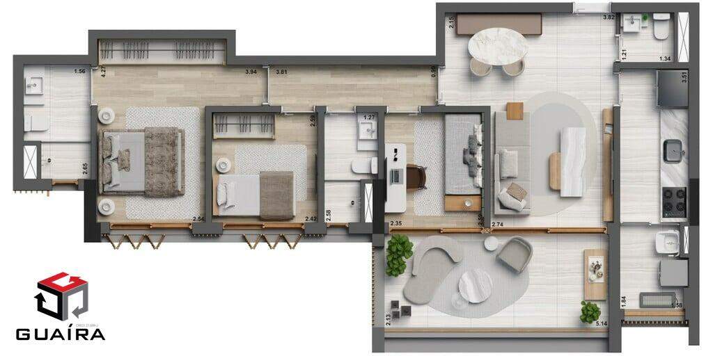 No coração nobre dos Jardins. Um ambiente em que a comodidade é aliada da praticidade. O Esquina Jardyn possui 3 pavimentos de lazer, espaço delivery, infraestrutura para ponto de recarga de carro elétrico, tudo para você viver no que há de melhor. O projeto traz a combinação perfeita entre os detalhes do concreto aparente, os vidros e a madeira em amplos espaços para o seu conforto. O apartamento possui 2 quartos, sendo 1 suíte, total de 2 banheiros, 1 vaga de garagem. O condomínio oferece: Bicicletário, espaço gourmet, portaria, segurança, terraço coletivo. Elevador social, salão de festas, lavanderia, SPA / hidromassagem, piscina com raia, piscina infantil, sala de reuniões. Há também Lounge, Solarium, Fitness. Imagens ilustrativas. Previsão de entrega Setembro/2025. Guaíra Imóveis – Desde 1987, conectando pessoas aos seus sonhos com solidez, transparência e um atendimento digitalmente humanizado. Com agências no ABC e em São Paulo e uma equipe com mais de 250 corretores prontos para te ajudar a comprar, vender ou alugar seu imóvel com segurança e agilidade. Todos os preços e condições comerciais estão sujeitos a alterações – Creci 21.699-J.