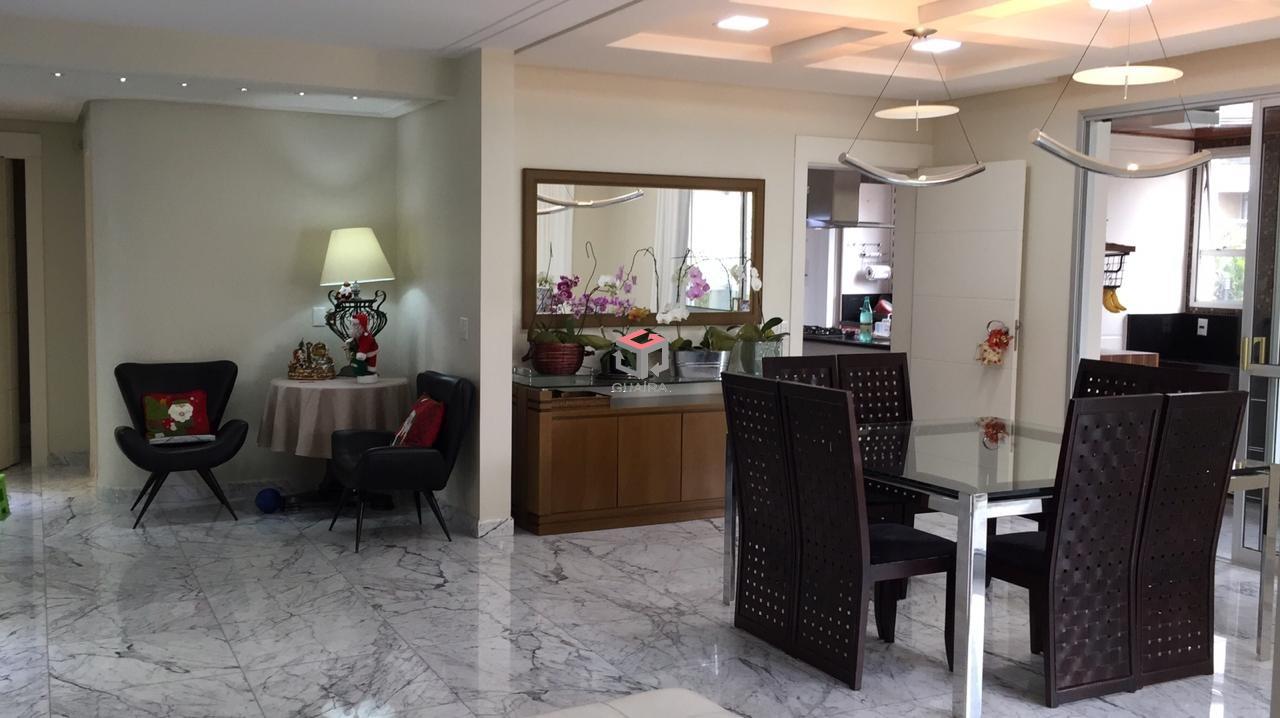 Maravilhoso Apartamento sendo 3 suítes master com armários planejados, hidromassagem e ar condicionado, amplo closet, sala para 3 ambientes com piso em mármore carrara integrada a ampla varanda gourmet, lareira, sala de cinema com ar condicionado, escritório, ampla cozinha planejada com ilha, lavabo... automatizado ( luzes e janelas ). Possui 05 vagas para veículos, 01 vaga para moto e depósito na garagem. Lazer completo com piscina aquecida de água de poco artesiano...quadra poliesportiva coberta, salão de festas, salão de jogos, churrasqueira, dependência de empregada, despensa, todo automatizado, com PABX, elevador com senha. Bairro elegante, com prédios de arquitetura moderna, essencialmente residencial com ruas arborizadas, neste bairro se encontra o melhor parque da cidade Celso Daniel e o shopping Gran Plaza. Os melhores restaurantes bares do ABC estão no bairro Jardim. Guaíra Imóveis – Desde 1987, conectando pessoas aos seus sonhos com solidez, transparência e um atendimento digitalmente humanizado. Com agências no ABC e em São Paulo e uma equipe com mais de 250 corretores prontos para te ajudar a comprar, vender ou alugar seu imóvel com segurança e agilidade. Todos os preços e condições comerciais estão sujeitos a alterações – Creci 21.699-J.