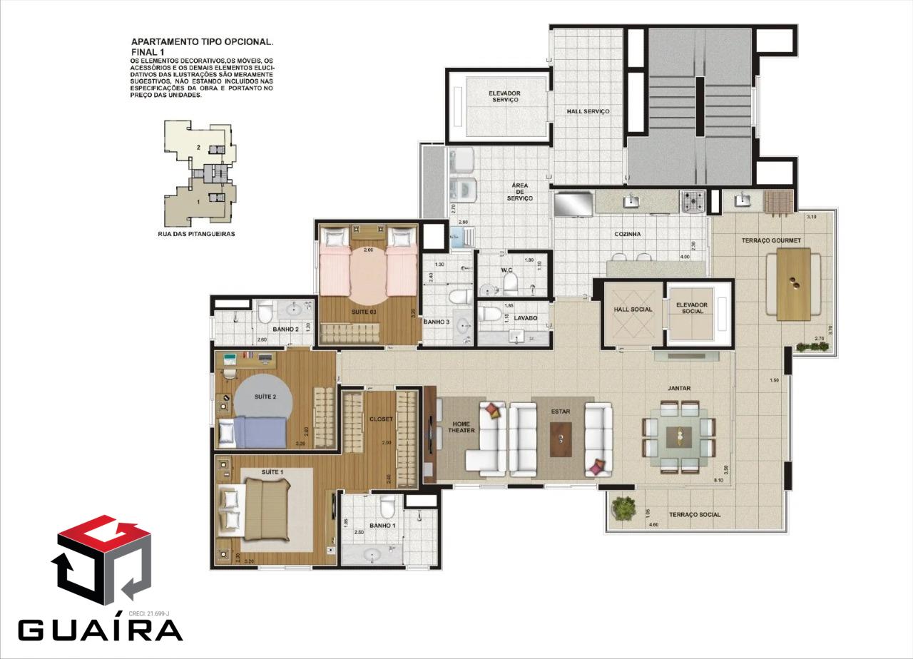 Apartamento Condomínio Jardim Monet com 140 m² ESTUDA IMÓVEL COM VALOR MENOR! Apartamento alto padrão no bairro Jardim, elevador privativo que da acesso a uma ampla sala de estar 3 ambientes que já está integrada com a varanda com vista panorâmica, acabamento fino em porcelanato. Segunda Varanda Gourmet com churrasqueira à carvão que possui acesso pela cozinha e varanda principal. Cozinha planejada muito bem equipada. Lavabo para uso comum. Apartamento com 4 quartos sendo 2 suítes, facilmente pode ser revertido para 3 suítes e ampliar ainda mais a sala de estar. Suíte máster planejada, 4º dormitório sendo utilizado como escritórios, todas janelas com sistema anti-ruído. 4 vagas de garagem. Condomínio completo oferece piscina, academia, salão de festa, área de churrasco, quadra. Localizado no Bairro Jardim, um dos melhores bairros de Santo André, na Rua das Pitangueiras, a poucos metros da Rua Figueiras, à 5 min do Colégio Liceu Jardim. Guaíra Imóveis – Desde 1987, conectando pessoas aos seus sonhos com solidez, transparência e um atendimento digitalmente humanizado. Com agências no ABC e em São Paulo e uma equipe com mais de 250 corretores prontos para te ajudar a comprar, vender ou alugar seu imóvel com segurança e agilidade. Todos os preços e condições comerciais estão sujeitos a alterações – Creci 21.699-J.