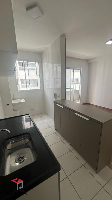 Apartamento de 2 quartos, sala de dois ambientes, estar e jantar, com sacada, cozinha americana com armários, área de serviço, banheiro social e 1 vaga de garagem.