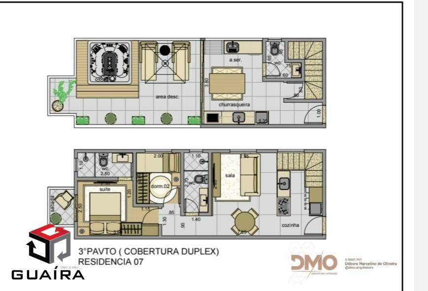 Apartamento tipo cobertura na planta. Com 2 dormitórios 1 suíte, sala, cozinha, 2 banheiros social, área de serviço e área gourmet na cobertura. Cobertura com 50,00 m²+50,00 m² = 100 m². 08 unidades, sendo 4 tipos e 4 coberturas. Prédio sem condomínio com elevador. Previsão para entrega Janeiro/2027. Guaíra Imóveis – Desde 1987, conectando pessoas aos seus sonhos com solidez, transparência e um atendimento digitalmente humanizado. Com agências no ABC e em São Paulo e uma equipe com mais de 250 corretores prontos para te ajudar a comprar, vender ou alugar seu imóvel com segurança e agilidade. Todos os preços e condições comerciais estão sujeitos a alterações – Creci 21.699-J.