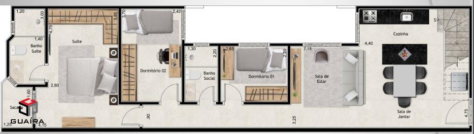 Cobertura 83+83m2, sendo parte coberta, 3 quartos, sendo 1 suíte, sala e cozinha conjugada, 2 vagas. Elevador. Localizado no Parque das Nações, bairro residencial com fácil acesso para Av. dos Estados. Previsão de entrega Julho 2025. Guaíra Imóveis – Desde 1987, conectando pessoas aos seus sonhos com solidez, transparência e um atendimento digitalmente humanizado. Com agências no ABC e em São Paulo e uma equipe com mais de 250 corretores prontos para te ajudar a comprar, vender ou alugar seu imóvel com segurança e agilidade. Todos os preços e condições comerciais estão sujeitos a alterações – Creci 21.699-J.