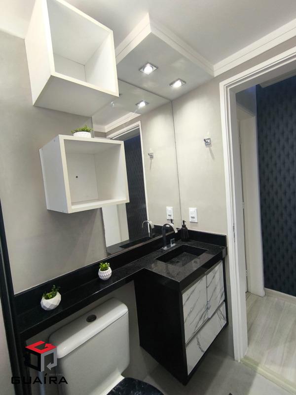 O quarto do casal conta com armários planejados e iluminação embutida no gesso do teto. O banheiro social é bem decorado. O imóvel ainda possui fechadura eletrônica, 1 vaga de garagem, está em andar alto e oferece vista livre.