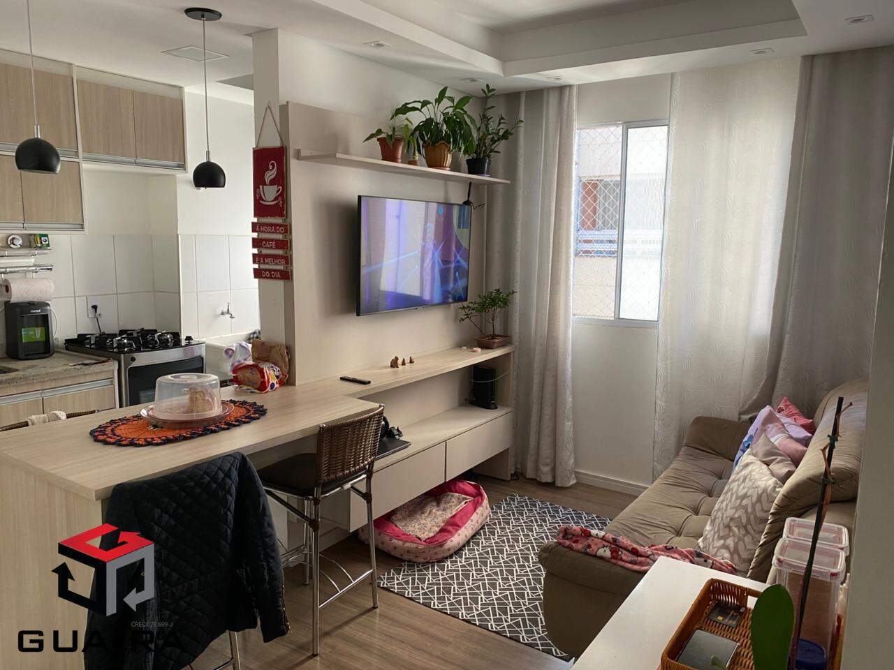 Descubra o conforto e a praticidade de viver no Condomínio For Life, em um apartamento moderno de 42m², pensado para oferecer bem-estar em cada detalhe. O imóvel conta com 2 quartos, 1 banheiro, vaga coberta e um acabamento de bom gosto, incluindo teto rebaixado em gesso até o corredor. Permanece no apartamento todo o mobiliário planejado dos quartos, banheiro, sala com rack e mesa acoplada integrada ao ambiente, além da cozinha equipada com armários sob medida e banquetas. Todos os móveis são de excelente qualidade, com apenas 4 anos de uso, e o piso laminado traz aconchego aos espaços. Com apenas 5 anos de construção, a torre única do condomínio oferece elevador social e elevador transfer PNE, distribuídos em 9 andares. A área de lazer é completa e pensada para momentos de descanso e diversão, com o furô, sauna, churrasqueira, sala de jogos, salão de festas, pergolado, mini mercado e academia em fase final. Uma oportunidade imperdível para quem busca morar com conforto, praticidade e lazer em um único lugar. Guaíra Imóveis – Desde 1987, conectando pessoas aos seus sonhos com solidez, transparência e um atendimento digitalmente humanizado. Com agências no ABC e em São Paulo e uma equipe com mais de 250 corretores prontos para te ajudar a comprar, vender ou alugar seu imóvel com segurança e agilidade. Todos os preços e condições comerciais estão sujeitos a alterações – Creci 21.699-J.