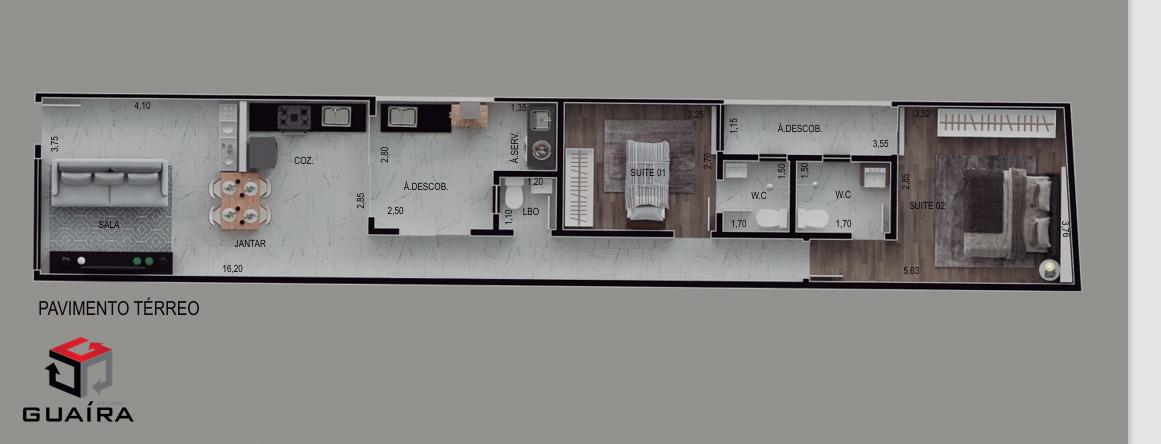Apresentamos este excelente imóvel com projeto moderno e ambientes bem distribuídos, ideal para quem busca conforto, funcionalidade e estilo. O imóvel possui 77 m² de área construída. A sala e a cozinha são integradas e contam com pé-direito duplo, proporcionando mais amplitude e ótima iluminação natural. São duas suítes confortáveis, garantindo mais privacidade. O imóvel também dispõe de um lavabo que atende tanto a área social quanto o espaço gourmet. A área de serviço é independente, trazendo mais praticidade no dia a dia. O espaço com churrasqueira é perfeito para momentos de lazer e confraternização. Conta ainda com duas vagas de garagem e infraestrutura pronta para instalação de ar-condicionado. Um imóvel planejado para oferecer conforto, praticidade e qualidade de vida. Entrega prevista para agosto de 2026. Guaíra Imóveis – Desde 1987, conectando pessoas aos seus sonhos com solidez, transparência e um atendimento digitalmente humanizado. Com agências no ABC e em São Paulo e uma equipe com mais de 250 corretores prontos para te ajudar a comprar, vender ou alugar seu imóvel com segurança e agilidade. Todos os preços e condições comerciais estão sujeitos a alterações – Creci 21.699-J.