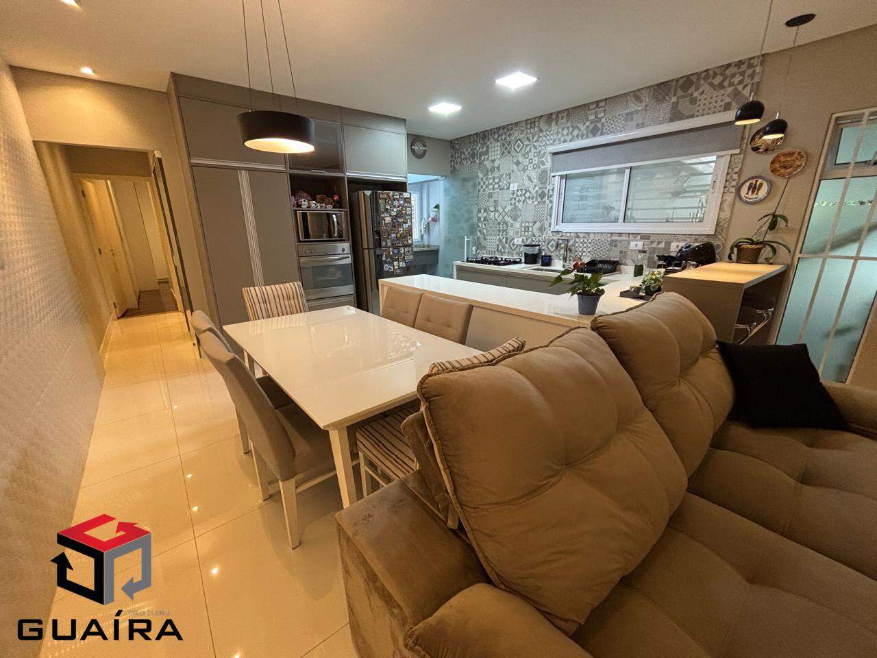 Casa moderna e sofisticada à venda na Vila Assunção – 137 m² de puro conforto e elegância. Encante-se com esta belíssima casa localizada em um dos bairros mais valorizados e desejados da região: Vila Assunção. Um imóvel pensado nos mínimos detalhes, unindo design contemporâneo, funcionalidade e alto padrão de acabamento. Com 137 m² muito bem distribuídos, a casa oferece: 2 suítes totalmente planejadas, com piso em madeira, proporcionando aconchego e sofisticação. Living amplo para 3 ambientes, ideal para receber amigos e familiares com conforto. Lavabo elegante. Cozinha americana planejada, integrada ao living, trazendo praticidade e modernidade. Área de serviço planejada. Espaço gourmet completo, com churrasqueira a carvão, perfeito para momentos especiais. Área de convivência externa com banheiro de apoio. 3 vagas de garagem, com portão automático. Diferenciais que fazem a diferença: Marcenaria sob medida em todos os ambientes. Revestimentos, louças e metais de alto padrão. Porcelanato nas áreas sociais, cozinha, banheiros, lavanderia e área gourmet. Teto em gesso tabicado com projeto luminotécnico em LED. Esquadrias em alumínio anodizado. Infraestrutura seca para ar-condicionado na sala. Banheiros com nicho e vitrô dentro do box. Filtros instalados na entrada de água da rua. Itens de segurança que garantem tranquilidade para sua família. Localização privilegiada, próxima a comércios, serviços, escolas e com fácil acesso às principais vias. Um imóvel pronto para morar, ideal para quem busca conforto, segurança e sofisticação em um dos melhores bairros da cidade. Agende sua visita e surpreenda-se! Guaíra Imóveis – Desde 1987, conectando pessoas aos seus sonhos com solidez, transparência e um atendimento digitalmente humanizado. Com agências no ABC e em São Paulo e uma equipe com mais de 250 corretores prontos para te ajudar a comprar, vender ou alugar seu imóvel com segurança e agilidade. Todos os preços e condições comerciais estão sujeitos a alterações – Creci 21.699-J.
