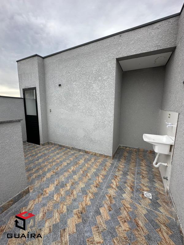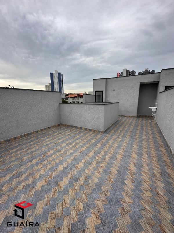 Cobertura sem condomínio com 97,94m² sendo sala 2 ambientes que dispões de piso e porcelanato, Janelas com alumínio na cor preta, Cozinha com revestimentos em cor clara dispondo de escada para acesso interno da cobertura, 2 quartos, 2 vagas de garagem.