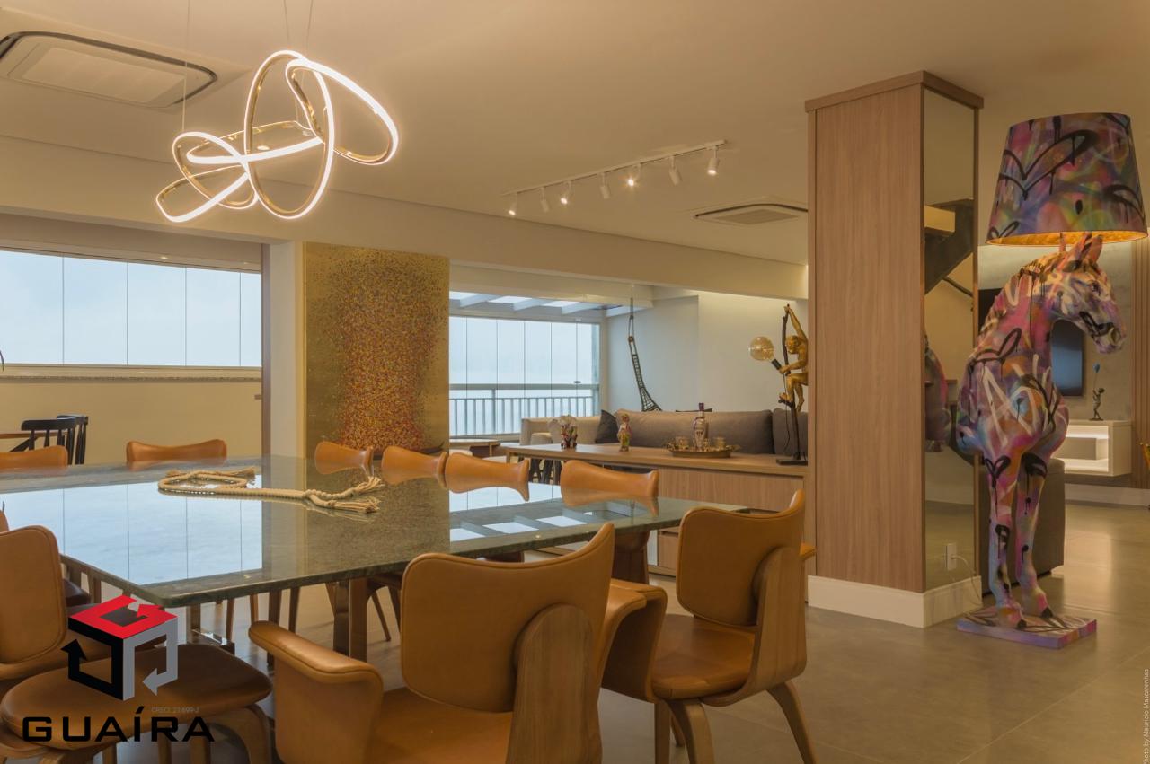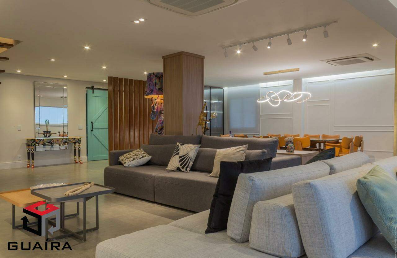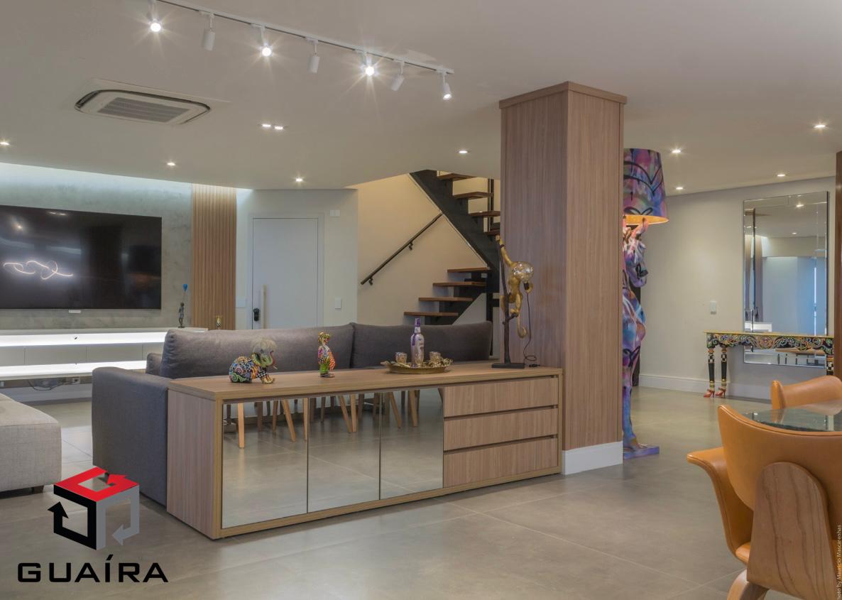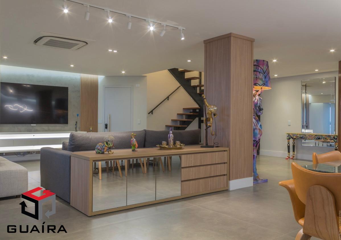 311.00m²Cobertura duplex maravilhosa, muito aconchegante, com acabamento de alto padrão, ar-condicionado e uma vista livre incrível da cidade. Tudo o que aparece nas fotos permanecerá no imóvel, com exceção dos eletrodomésticos. O imóvel conta com 3 suítes, sendo 2 delas máster, todas com closet e varanda. Possui sala de estar, sala de jantar, cantinho do café, 2 escritórios, lavabo, banheiro de serviço, lavanderia separada, roupeiro e uma linda área gourmet com churrasqueira integrada à cozinha. Todo o apartamento conta com móveis planejados de muito bom gosto e portas blindadas, garantindo ainda mais segurança. Na varanda da cobertura, há uma jacuzzi com capacidade para até 7 pessoas e um espaço ideal para tomar sol e relaxar. São 7 vagas de garagem, oferecendo amplo espaço para acomodar seus veículos com praticidade, além de um depósito privativo. A vista panorâmica é simplesmente deslumbrante, proporcionando uma sensação única de liberdade e tranquilidade. O condomínio oferece lazer completo, incluindo uma charmosa cascata com lago e peixes, além de diversas opções de entretenimento e bem-estar. Não perca a chance de viver com conforto, sofisticação e praticidade em uma localização privilegiada. Agende sua visita e encante-se com este imóvel exclusivo! Guaíra Imóveis – Desde 1987, conectando pessoas aos seus sonhos com solidez, transparência e um atendimento digitalmente humanizado. Com agências no ABC e em São Paulo e uma equipe com mais de 250 corretores prontos para te ajudar a comprar, vender ou alugar seu imóvel com segurança e agilidade. Todos os preços e condições comerciais estão sujeitos a alterações – Creci 21.699-J.