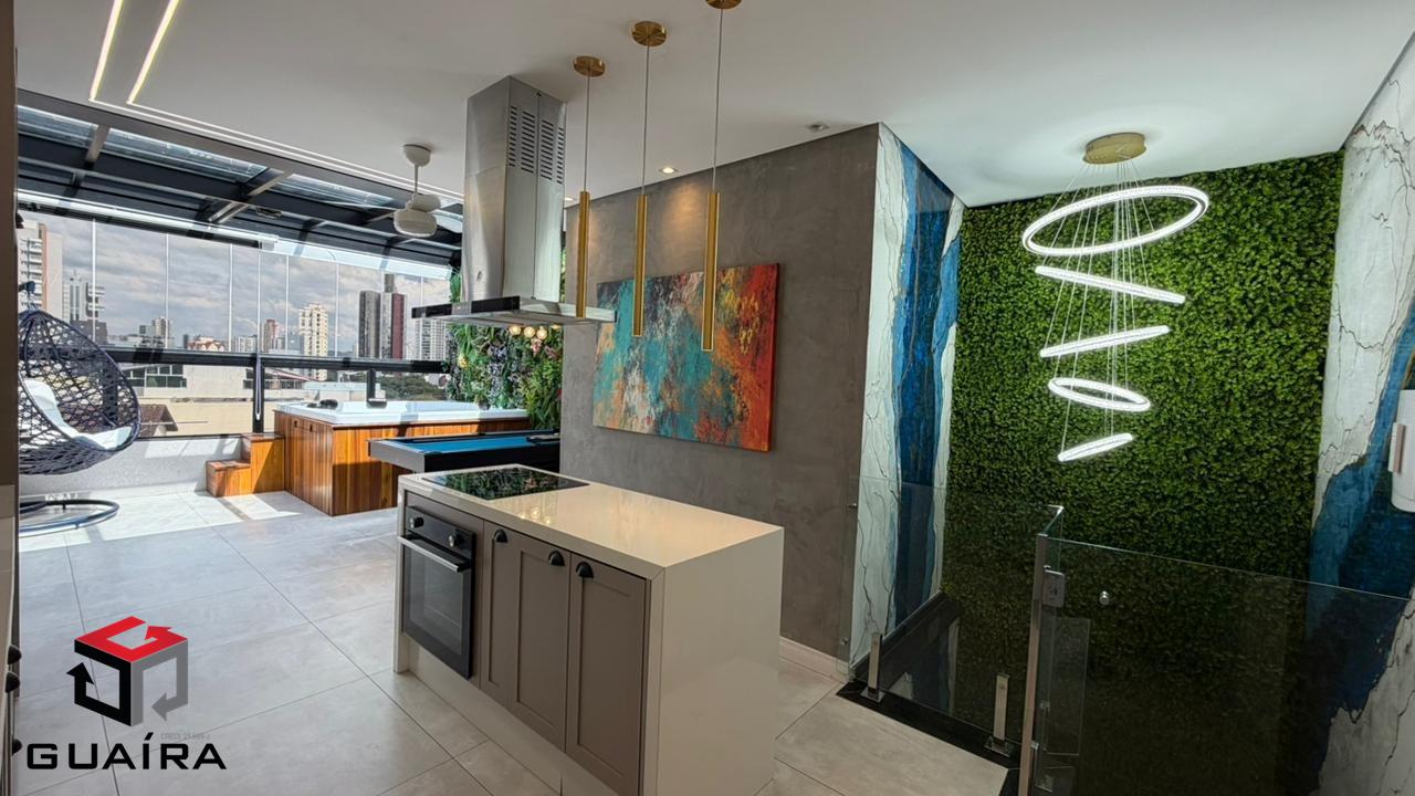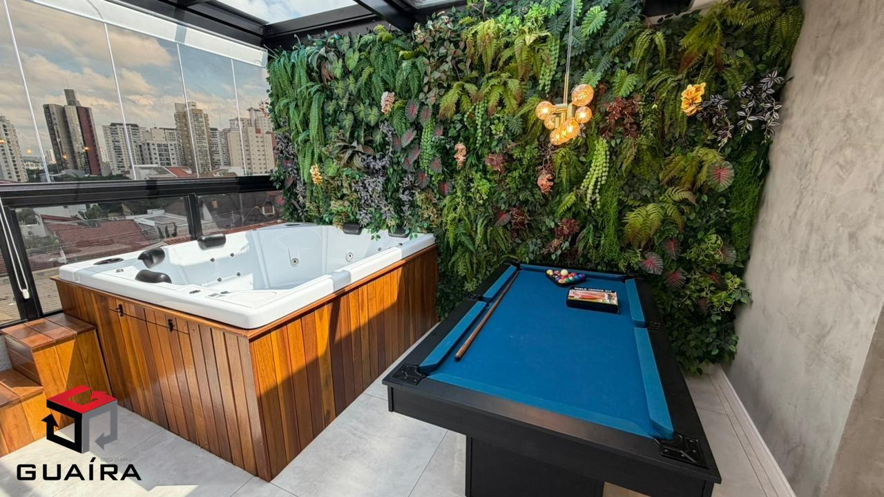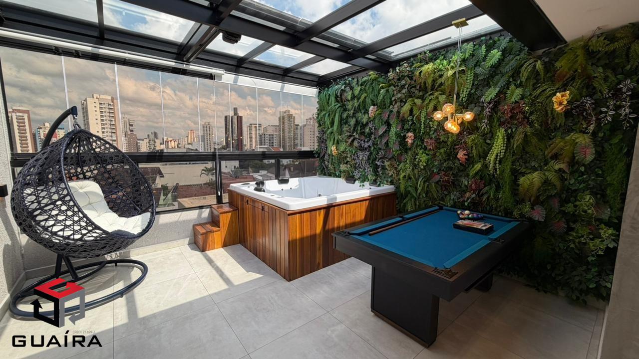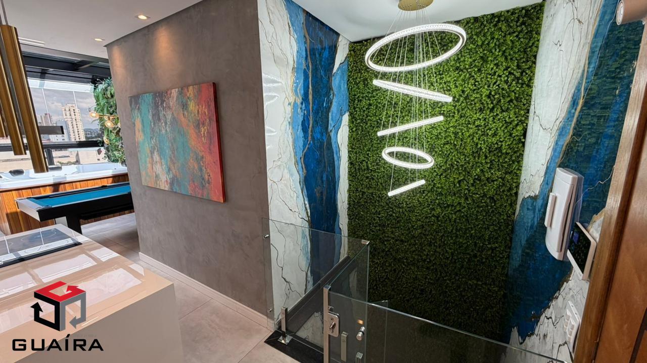 Apresentamos uma cobertura exclusiva em Santo André/SP, ideal para compradores exigentes que buscam sofisticação, conforto, tecnologia e privacidade. Localizada em prédio sem condomínio, esta cobertura foi planejada nos mínimos detalhes, com acabamentos premium e soluções modernas para o dia a dia. Características do Imóvel. Área privativa: 98 m² muito bem distribuídos. Garagem: 1 vaga demarcada. Depósito privativo. Elevador. Imóvel em dois pavimentos, totalmente planejado. Acabamentos e Diferenciais. Escada em mármore, com vidros Blindex e torre. Parede marmorizada artesanal, exclusiva. Revestimentos de alto padrão em todos os ambientes. Projeto de iluminação moderno. 2 aparelhos de ar-condicionado de última geração. Chuveiro inteligente com controle via Wi-Fi. Cozinha Moderna e Funcional. Ilha central. Coifa industrial. Fogão de indução. Forno elétrico. Cuba industrial. Área gourmet completa. Churrasqueira revestida. Grelha inox planejada de alto padrão. Paisagismo completo, presente na área gourmet e na escada. Cobertura automatizada Fechamento em vidro com película de privacidade e controle remoto. Jacuzzi para até 6 pessoas, perfeita para momentos de lazer e relaxamento. Segurança e conforto. Sistema de alarme. Câmeras de monitoramento. Diferencial exclusivo. Mesa multiuso em madeira de lei, que pode ser utilizada como mesa de jantar ou mesa de sinuca, agregando versatilidade e sofisticação ao ambiente. Uma cobertura única em Santo André, que une design contemporâneo, tecnologia, lazer e alto padrão construtivo, ideal para quem busca morar bem ou investir em um imóvel diferenciado na região. Entre em contato para mais informações e agende sua visita. Guaíra Imóveis – Desde 1987, conectando pessoas aos seus sonhos com solidez, transparência e um atendimento digitalmente humanizado. Com agências no ABC e em São Paulo e uma equipe com mais de 250 corretores prontos para te ajudar a comprar, vender ou alugar seu imóvel com segurança e agilidade. Todos os preços e condições comerciais estão sujeitos a alterações – Creci 21.699-J.