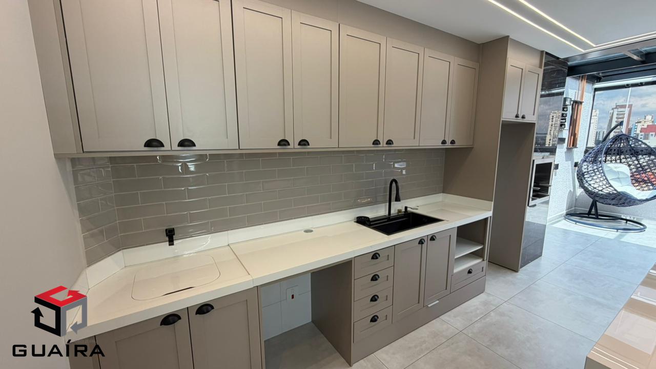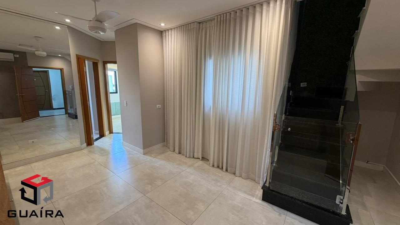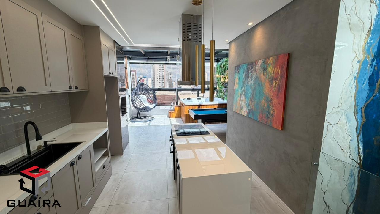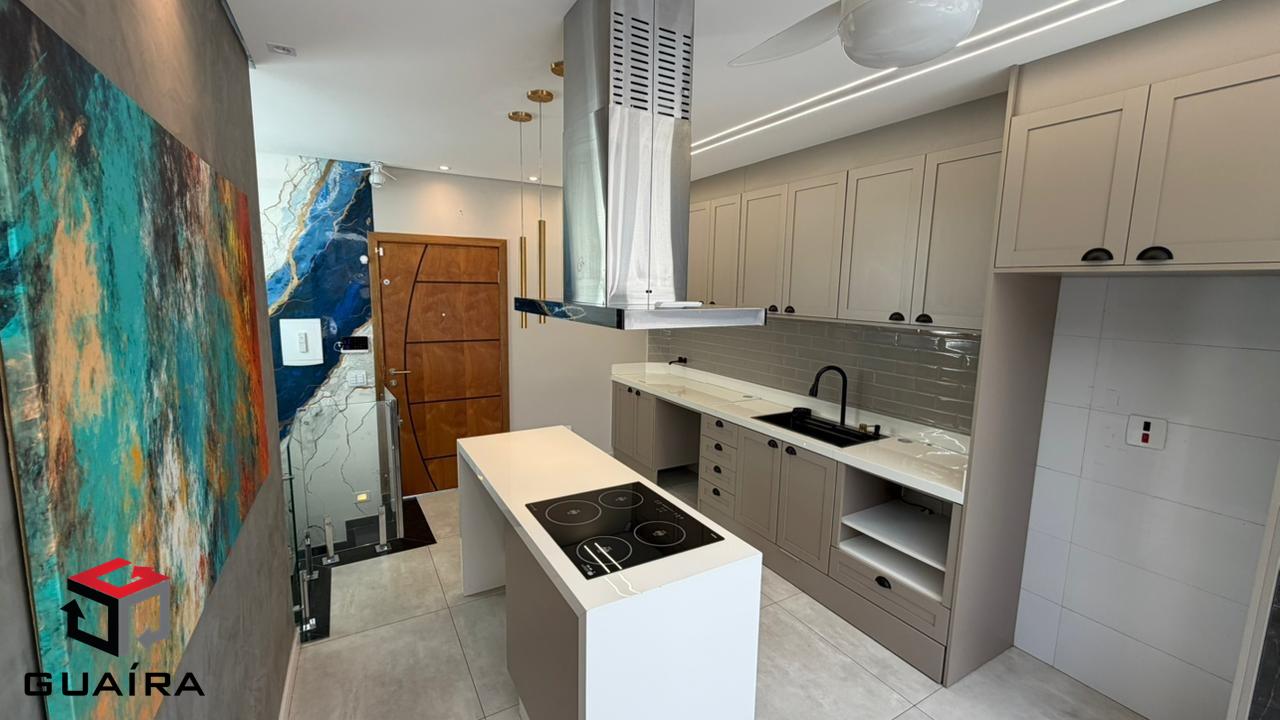 Apresentamos uma cobertura exclusiva em Santo André/SP, ideal para compradores exigentes que buscam sofisticação, conforto, tecnologia e privacidade. Localizada em prédio sem condomínio, esta cobertura foi planejada nos mínimos detalhes, com acabamentos premium e soluções modernas para o dia a dia. Características do Imóvel. Área privativa: 98 m² muito bem distribuídos. Garagem: 1 vaga demarcada. Depósito privativo. Elevador. Imóvel em dois pavimentos, totalmente planejado. Acabamentos e Diferenciais. Escada em mármore, com vidros Blindex e torre. Parede marmorizada artesanal, exclusiva. Revestimentos de alto padrão em todos os ambientes. Projeto de iluminação moderno. 2 aparelhos de ar-condicionado de última geração. Chuveiro inteligente com controle via Wi-Fi. Cozinha Moderna e Funcional. Ilha central. Coifa industrial. Fogão de indução. Forno elétrico. Cuba industrial. Área gourmet completa. Churrasqueira revestida. Grelha inox planejada de alto padrão. Paisagismo completo, presente na área gourmet e na escada. Cobertura automatizada Fechamento em vidro com película de privacidade e controle remoto. Jacuzzi para até 6 pessoas, perfeita para momentos de lazer e relaxamento. Segurança e conforto. Sistema de alarme. Câmeras de monitoramento. Diferencial exclusivo. Mesa multiuso em madeira de lei, que pode ser utilizada como mesa de jantar ou mesa de sinuca, agregando versatilidade e sofisticação ao ambiente. Uma cobertura única em Santo André, que une design contemporâneo, tecnologia, lazer e alto padrão construtivo, ideal para quem busca morar bem ou investir em um imóvel diferenciado na região. Entre em contato para mais informações e agende sua visita. Guaíra Imóveis – Desde 1987, conectando pessoas aos seus sonhos com solidez, transparência e um atendimento digitalmente humanizado. Com agências no ABC e em São Paulo e uma equipe com mais de 250 corretores prontos para te ajudar a comprar, vender ou alugar seu imóvel com segurança e agilidade. Todos os preços e condições comerciais estão sujeitos a alterações – Creci 21.699-J.