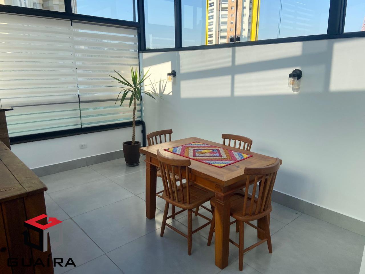 Cobertura à venda com 94 m² localizado no Bairro Jardim em Santo André, com 2 suítes uma delas com sacada com fechamento em vidro, cozinha com armários planejados, frigobar, cooktop, sala e sala de jantar, área de convivência de tirar o folego, cozinha completa com armários, Ofurô, quintal, lavabo e um teto retrátil que ira oferecer muita privacidade. Esta cobertura conta com elevador que irá trazer muita comodidade pois você terá acesso interno e externo. Em localização privilegiada no bairro Jardim, com fácil acesso às principais avenidas, próximo ao Shopping ABC, Parque Celso Daniel, Carrefour, estação de trem, hospitais renomados, colégios particulares, além de uma ampla variedade de restaurantes, cafeterias e comércios sofisticados, em uma região arborizada, segura e com excelente infraestrutura. Aceita financiamento bancário e FGTS. Guaíra Imóveis – desde 1987 trabalhando com Solidez, Honestidade e Digitalmente Humanizada, com agências no ABC e SP e mais de 200 corretores para ajudar você a comprar, vender e alugar o seu imóvel. Todos os preços e condições comercias estão sujeitos à alteração. Creci 21.699-J