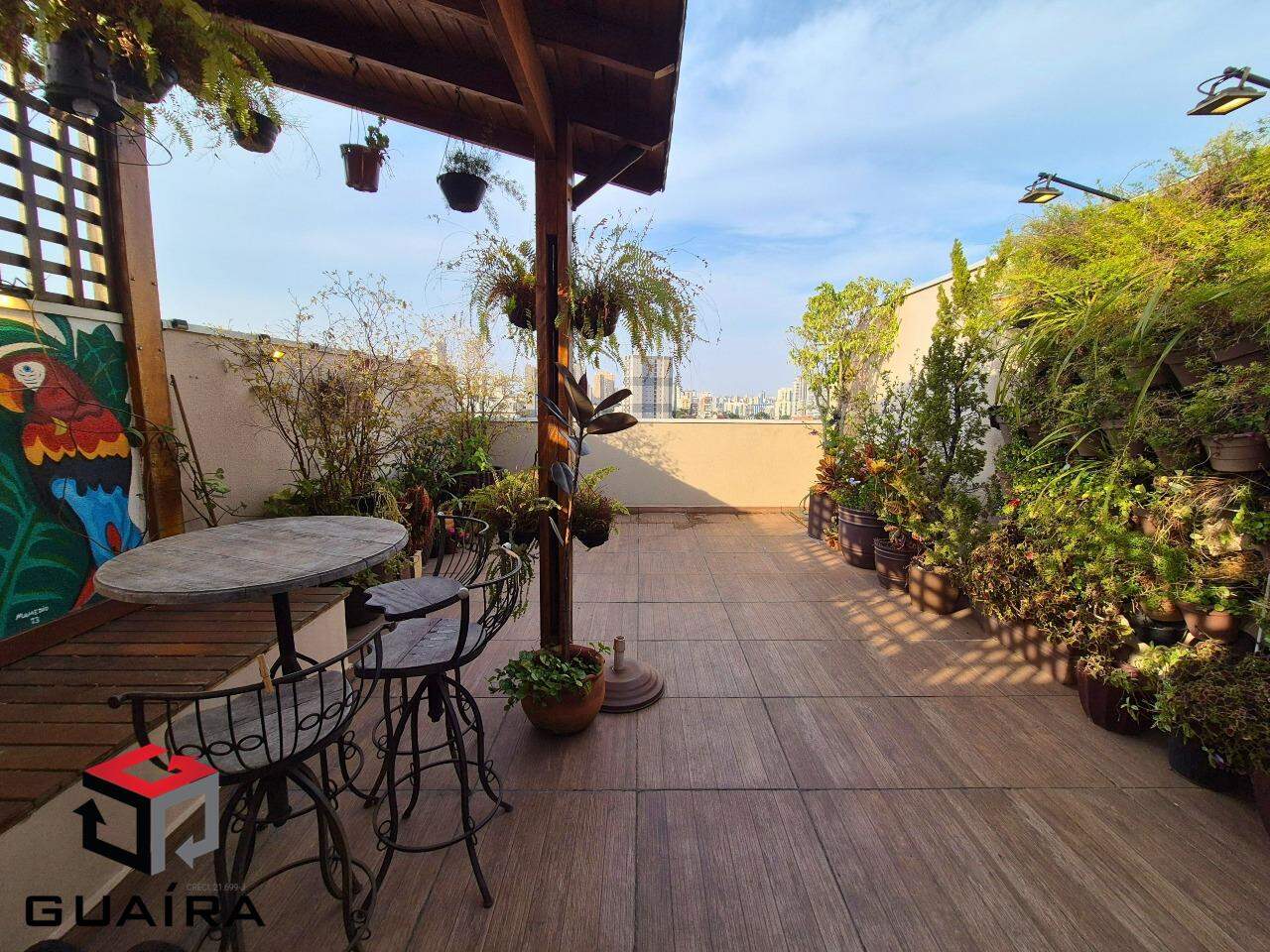 Essa linda cobertura é um verdadeiro refúgio no meio da cidade. Com vista para o nascer do sol, você e sua família vão viver momentos lindos e inesquecíveis aqui! Localização privilegiada, um bairro tranquilo e residencial, na divisa de São Caetano e Santo André, uma região com uma completa infraestrutura de comércios e serviços. A cobertura conta com 120m² de área privativa, 2 quartos sendo 1 suíte, com planejados de qualidade em todos os quartos, banheiros, cozinha e lavanderia. No andar de cima um belo terraço com um projeto exclusivo de paisagismo, espaço perfeito para receber amigos e familiares, e a vista, sem dúvida, é um dos grandes destaques! Vaga para 2 veículos, com possibilidade de estacionar uma moto também. Prédio com sistema de câmeras e pintura externa renovada recentemente. Agende sua visita! Guaíra Imóveis – Desde 1987, conectando pessoas aos seus sonhos com solidez, transparência e um atendimento digitalmente humanizado. Com agências no ABC e em São Paulo e uma equipe com mais de 250 corretores prontos para te ajudar a comprar, vender ou alugar seu imóvel com segurança e agilidade. Todos os preços e condições comerciais estão sujeitos a alterações – Creci 21.699-J.