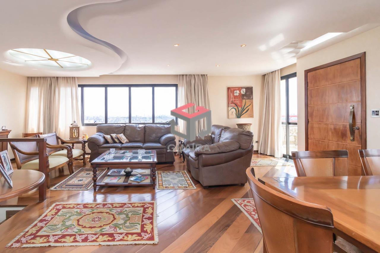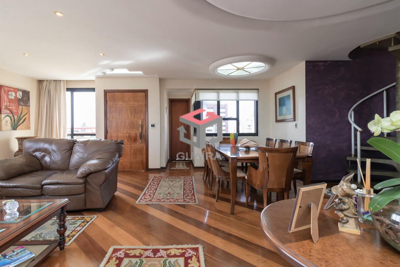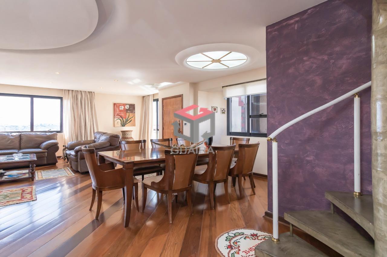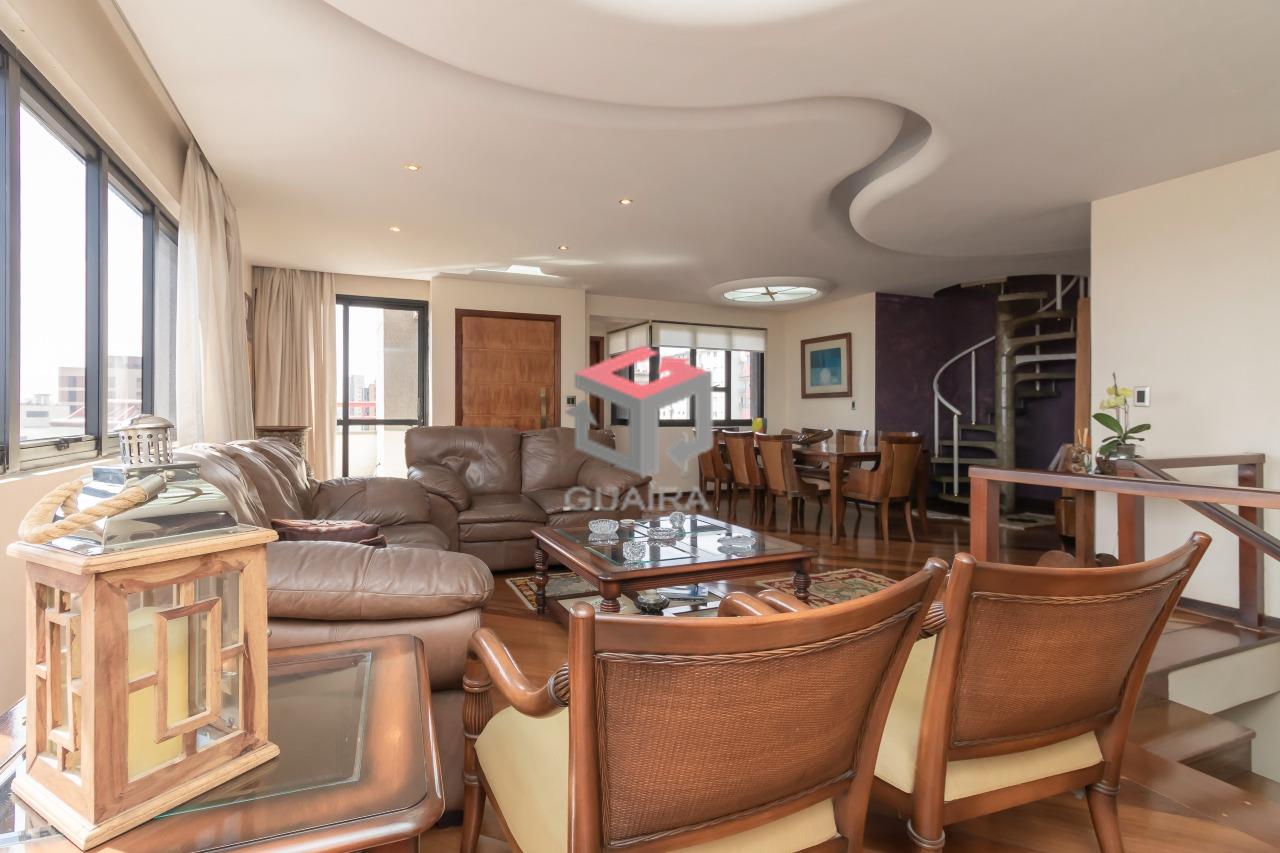 330.00m²Cobertura de 330 m² com elevador no Bairro Santa Paula em São Caetano do Sul - SP. No piso lazer (cobertura) tem uma linda saleta de estar com TV e uma adega para relaxar e ter muito conforto. Possui também uma área gastronômica com forno e fogão a lenha, churrasqueira carvão, chopeira fixa, pia, frigobar e acessórios. O teto é panorâmico com controle elétrico, podendo fechá-lo ou abri-lo. Nesse espaço acomoda confortavelmente em torno de 20 pessoas. Piso social com elevador privativo na porta de entrada. Sala de visitas, sala de jantar e sala de estar. Janelas de vidro com visão panorâmica para a cidade de São Caetano do Sul e São Paulo. Sanca no teto com iluminação diferenciada. Sacada com mesa e cadeiras. Lavabo. Janela lateral com floreira. Escada caracol para acesso ao piso lazer (cobertura). Piso inferior : 4 quartos sendo 2 suítes (1 suíte máster com closet e aquecimento elétrico e 1 suíte Jr. com armários), sala de TV com sacada e floreira. Um dos dormitórios foi transformado em escritório. Cozinha planejada com armários e acessórios embutidos e Sala para refeição diária. Na lavanderia tem um quarto de empregado com banheiro, despensa e acesso a porta para o elevador de serviço. Guaíra Imóveis – Desde 1987, conectando pessoas aos seus sonhos com solidez, transparência e um atendimento digitalmente humanizado. Com agências no ABC e em São Paulo e uma equipe com mais de 250 corretores prontos para te ajudar a comprar, vender ou alugar seu imóvel com segurança e agilidade. Todos os preços e condições comerciais estão sujeitos a alterações – Creci 21.699-J.