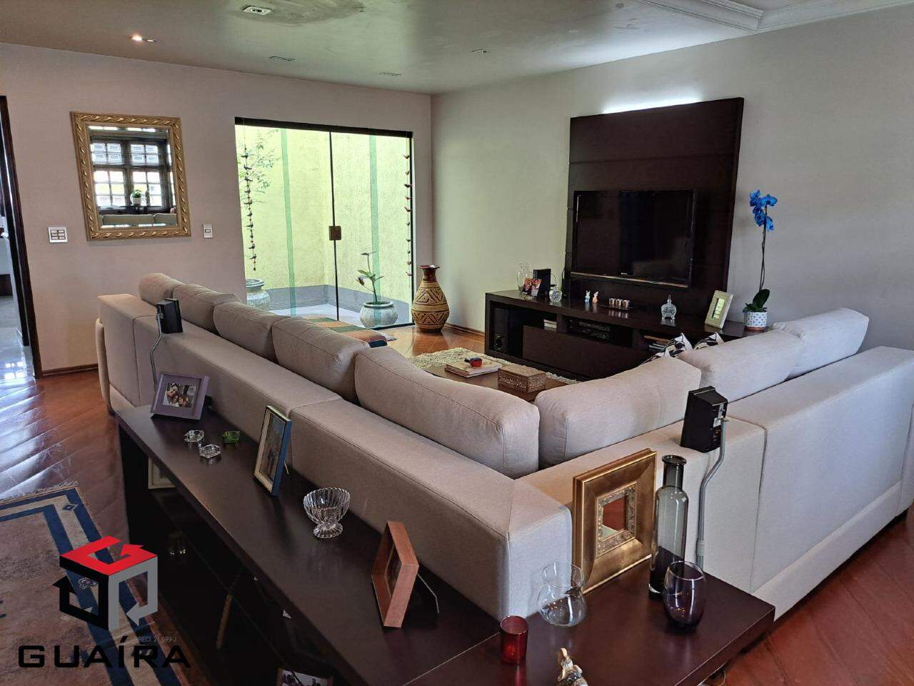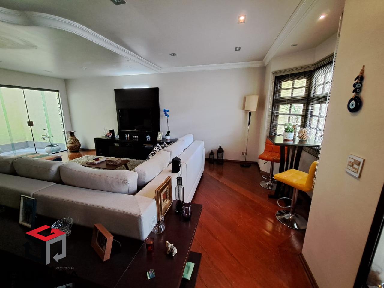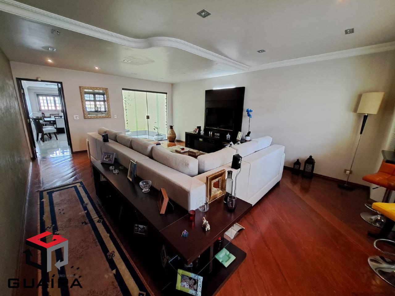 Sobrado amplo, com localização privilegiada e acesso às principais vias de ligação com todo ABC. Este imóvel possui cinco vagas de garagem com acesso interno ao interior da casa, em sua espaçosa sala, piso corrido em madeira jatobá, spots de iluminação no teto e jardim de inverno trazem uma iluminação aconchegante ao ambiente, no mesmo espaço, uma bela janela bay window traz requinte ao cômodo. Passando pelo corredor, um banheiro social e mais adiante cozinha em bom tamanho, com armários planejados, bancada de mármore, sala de jantar com mesa para seis pessoas e duas janelas grandes. Uma escada com um belo acabamento em madeira, te leva para o andar superior, e você encontra três amplas suítes revestidas com piso em madeira e armários planejados, contendo na suíte principal, banheira de hidromassagem e sacada. Na parte externa inferior dos fundos, lavanderia coberta , banheiro, um quintal bem amplo, com piscina, área gourmet com churrasqueira, pia e bancada disponibiliza os momentos de lazer em família. Venha conhecer, agende sua visita. Avalia permuta por imóvel residencial em até 30% do valor. Guaíra Imóveis – Desde 1987, conectando pessoas aos seus sonhos com solidez, transparência e um atendimento digitalmente humanizado. Com agências no ABC e em São Paulo e uma equipe com mais de 250 corretores prontos para te ajudar a comprar, vender ou alugar seu imóvel com segurança e agilidade. Todos os preços e condições comerciais estão sujeitos a alterações – Creci 21.699-J.