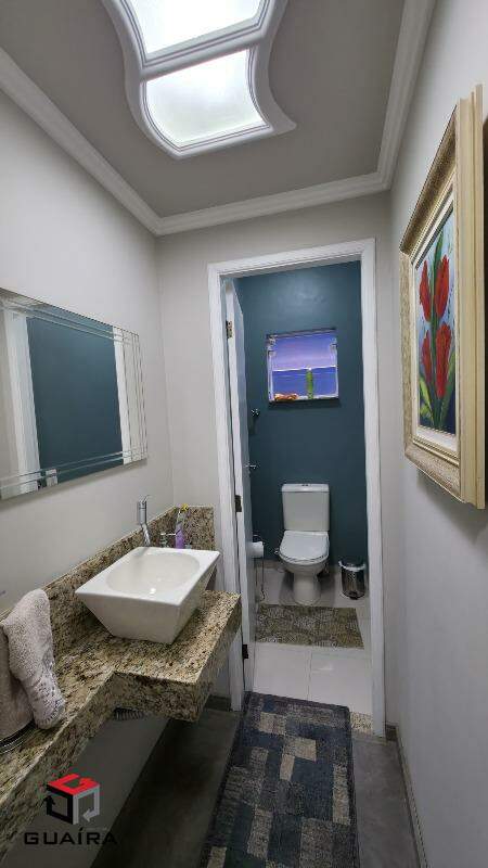 Sobrado com 177 m² e Vista Privilegiada na Cobertura Este sobrado combina conforto, segurança e ótimo aproveitamento de espaço. Possui 3 quartos, sendo 1 suíte com armários planejados, em um terreno amplo de 159 m². A sala espaçosa para dois ambientes integra-se a uma cozinha moderna com armários planejados e novos. Conta ainda com lavabo, área de serviço com armários, e banheiro com box de vidro. O piso da sala, cozinha e lavabo é em porcelanato polido; a escada em granito e os quartos com piso laminado de madeira garantem elegância e praticidade. Na parte externa, destaque para a ampla área gourmet, equipada com pia, bancadas, mesas, churrasqueira e forno de pizza — perfeita para receber amigos e familiares. A garagem comporta 2 vagas cobertas e possui portão eletrônico. Imóvel bem arejado, situado em rua tranquila e segura. Proprietário estuda permuta por apartamento de menor valor (até 50%). Agende já sua visita com um de nossos corretores! Guaíra Imóveis – Desde 1987, conectando pessoas aos seus sonhos com solidez, transparência e um atendimento digitalmente humanizado. Com agências no ABC e em São Paulo e uma equipe com mais de 250 corretores prontos para te ajudar a comprar, vender ou alugar seu imóvel com segurança e agilidade. Todos os preços e condições comerciais estão sujeitos a alterações – Creci 21.699-J.