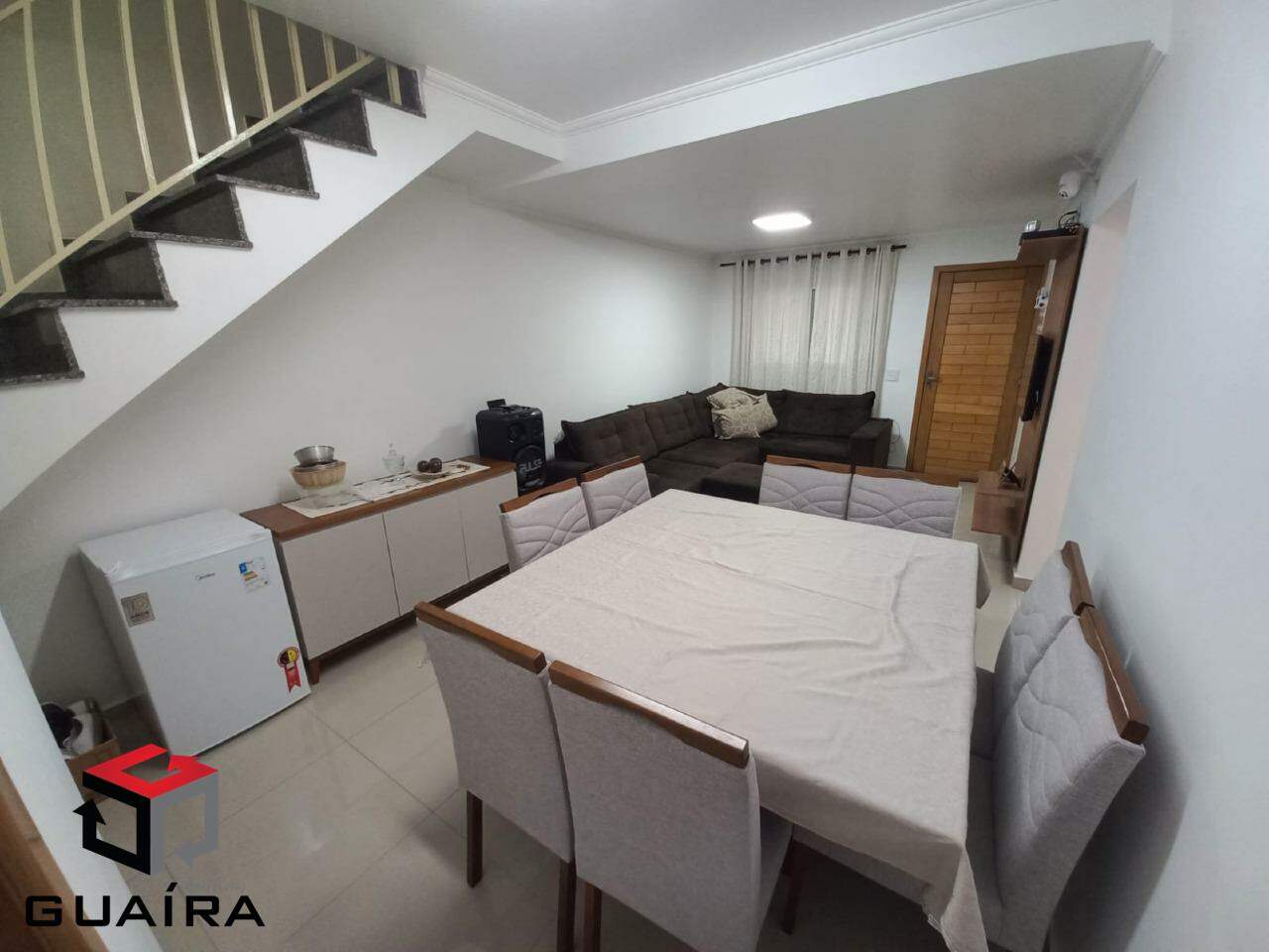 Sobrado em Santo André - 90 m² de construção - contendo 3 quartos, sendo 1 suíte com box de vidro, sala espaçosa dois ambientes, sala de jantar e estar, cozinha de ótima funcionalidade com balcão todo em granito, banheiro social com box de vidro, lavabo com azulejo em todas as paredes, área de serviço parcialmente coberta com churrasqueira, pia e tanque integrados em granito, para momentos de lazer. Sacada ampla integrada entre os quartos com deck em madeira cumaru (madeira resistente a água, com alta densidade e durabilidade). Todos os cômodos amplos. Armários planejados em perfeito estado em todos os cômodos. Box de vidro nos dois banheiros do piso superior. Infra estrutura elétrica pronta para ar condicionado. Garagem coberta para 2 carros com portão automático. Imóvel em estado de novo, com apenas 6 anos de uso, muito bem conservado. Localização excelente, próximo a Av. Itamarati e Av. Araucária. Próximo de supermercados, escolas, diversas linhas de ônibus, fácil acesso ao centro de Santo André. escritura e documentação ok. Estuda proposta - Aceita financiamento e FGTS. Agende visita. Guaíra Imóveis – Desde 1987, conectando pessoas aos seus sonhos com solidez, transparência e um atendimento digitalmente humanizado. Com agências no ABC e em São Paulo e uma equipe com mais de 250 corretores prontos para te ajudar a comprar, vender ou alugar seu imóvel com segurança e agilidade. Todos os preços e condições comerciais estão sujeitos a alterações – Creci 21.699-J.