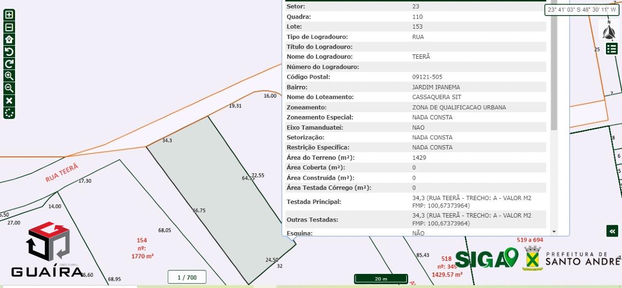 Terreno com área de 1429m². Terreno ideal para Incorporadoras e construtoras . Região ideal para PMCMV Bem localizado no Bairro de Jardim Ipanema, bairro residencial ao lado do Corredor de ônibus da Av. Capitão Mario Toledo de Camargo, ligação do Terminal Vila Luzita ao Terminal de integração Ônibus, Trólebus e Trem CPTM de Santo André. Parque Ana Brandão bem em frente com quadras poliesportivas, campo de futebol e pistas de Skate, pista de caminhada, e apenas a 2km do Clube Aramaçan, Estádio Bruno Daniel. Região bem servida de comércios e serviços, Escolas e Unidades de Saúde. Pode aceitar imóvel apartamento ou sobrados pronto como parte de pagamento. Ao lado temos outro imóvel Terreno com área de 1770m², Referencia 157659. Guaíra Imóveis – Desde 1987, conectando pessoas aos seus sonhos com solidez, transparência e um atendimento digitalmente humanizado. Com agências no ABC e em São Paulo e uma equipe com mais de 250 corretores prontos para te ajudar a comprar, vender ou alugar seu imóvel com segurança e agilidade. Todos os preços e condições comerciais estão sujeitos a alterações – Creci 21.699-J.