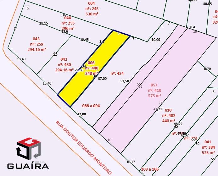 Excelente terreno com 7 metros de frente, 34 metros lado esquerdo e 37 metros lado direito, casa antiga no local. Comercial/Residencial! Localização privilegiada próximo das Avenidas Lino Jardim e Portugal, Shopping ABC! Com toda a estrutura de mercado, restaurantes, padarias e comércios ao redor. Agende uma visita. Não aceita permuta. Guaíra Imóveis – Desde 1987, conectando pessoas aos seus sonhos com solidez, transparência e um atendimento digitalmente humanizado. Com agências no ABC e em São Paulo e uma equipe com mais de 250 corretores prontos para te ajudar a comprar, vender ou alugar seu imóvel com segurança e agilidade. Todos os preços e condições comerciais estão sujeitos a alterações – Creci 21.699-J.