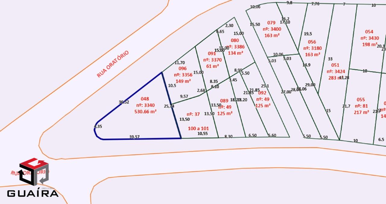 Terreno com 530,66 m² no Parque Oratório, em Santo André – SP. Localizado de forma estratégica, o terreno permite a implantação de diversos tipos de empreendimentos comerciais e/ou industriais, como galpão, posto de combustíveis, supermercado, salões comerciais para diferentes atividades, estacionamento, templos religiosos, salão de festas, entre outros segmentos. A localização é um grande diferencial, estando a apenas 10 minutos do Centro de Santo André, em uma região com grande fluxo de veículos e transporte público, proporcionando facilidade de acesso. Além disso, o ponto conta com ótima visibilidade comercial e grande potencial de valorização, sendo uma excelente oportunidade tanto para instalação de negócios quanto para investimento. Guaíra Imóveis – Desde 1987, conectando pessoas aos seus sonhos com solidez, transparência e um atendimento digitalmente humanizado. Com agências no ABC e em São Paulo e uma equipe com mais de 250 corretores prontos para te ajudar a comprar, vender ou alugar seu imóvel com segurança e agilidade. Todos os preços e condições comerciais estão sujeitos a alterações – Creci 21.699-J