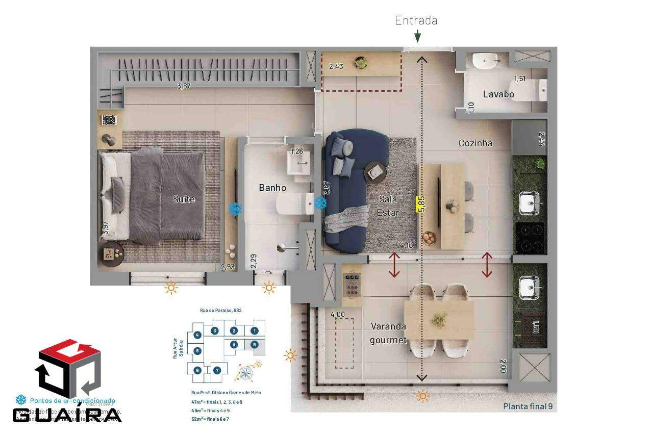O Vitra Paraíso é o condomínio residencial perfeito para você que quer morar perto de tudo, em um ponto muito desejado da cidade de São Paulo, mas não abre mão da praticidade. Localizado ao lado do Metrô Paraíso, na maior região hospitalar do país, no eixo comercial do Paraíso e perto de bons shoppings. São aptos com opções de plantas de 47 ou 52m². Com um projeto de 1 suíte + lavabo, sala de estar, cozinha e uma ótima varanda gourmet em ambas as plantas. Cada unidade tem sua vaga de garagem determinada e já entregue com infraestrutura elétrica. Uma única torre, com um lazer completo no térreo, que conta com casa de campo equipada, com: piscina, churrasqueira e playground. Além disso, à disposição dos moradores, uma lavanderia coletiva, um mini mercado, espaço para Uber/espera de carro e um pet place para os seus amigos de patas aproveitarem também. Com 27 pavimentos de apartamentos. Tudo perfeito pra você viver e morar muito bem! Entre em contato com a nossa equipe e venha conhecer! Guaíra Imóveis – Desde 1987, conectando pessoas aos seus sonhos com solidez, transparência e um atendimento digitalmente humanizado. Com agências no ABC e em São Paulo e uma equipe com mais de 250 corretores prontos para te ajudar a comprar, vender ou alugar seu imóvel com segurança e agilidade. Todos os preços e condições comerciais estão sujeitos a alterações – Creci 21.699-J.